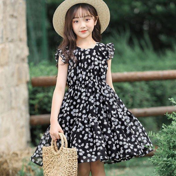 ワンピース 女の子 夏ワンピ 花柄 裏地付き 可愛い ガールズ 子供ワンピ Aラインスカート ブラック 普段着 夏着 女児用ワンピ 110 1 130 140 150 160 P マユポポ 通販 Yahoo ショッピング
