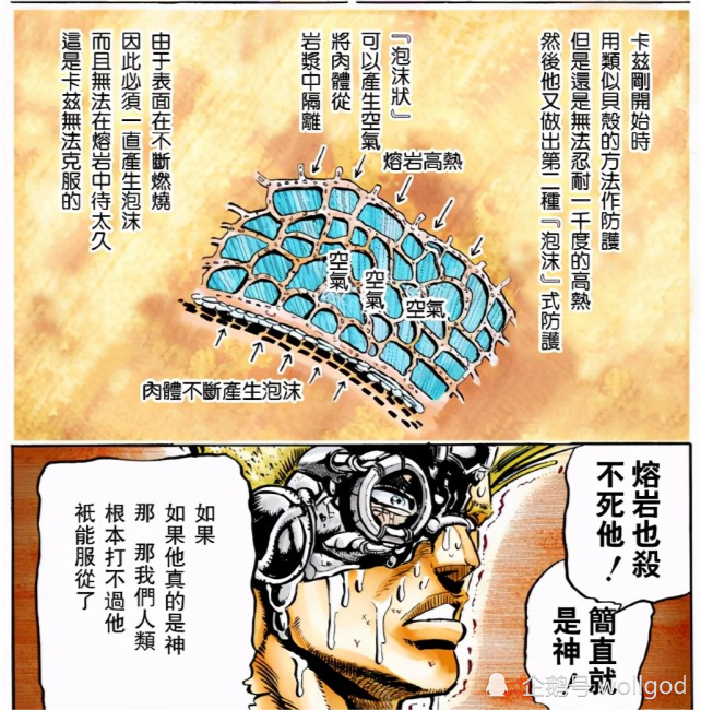 當卡茲成為究極生物時,他自認為他戰勝了大自然,開始肆意玩弄生命,結果就被大自然——地球——給放逐到宇宙。從卡茲的經歷,或許荒木老師便是想警示人們:在人類發展如此先進下,面對大自然仍不可遺忘尊敬的心。 資料來源 火山大爆發Google Books 回覆 超越一切的蘿莉控 灼燒應該是日之呼吸類似太陽性質的效果 卡茲完全無視陽光 甚至能反過來用波紋的能量來燒傷人類 編輯 單單雙雙 xyzzxyzz超越一切的蘿莉控緣壹的赫刀不太單純,如果只是太陽性質不會一直燒300年,切掉重長燃燒還在